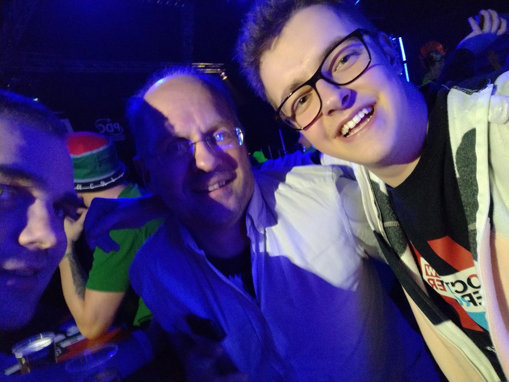 De klok sloeg inmiddels vijf uur. Tijd om even de benen te strekken en een hapje te eten. Buiten aan de Ethias Arena gingen de gezangen echter gewoon door. “Don’t take me home. Please don’t take me home, I just don’t wanna go to work”, schalde uit de hese kelen. Een van die kelen was Magnus, een Duitse fan die voor het eerst een dartstoernooi bijwoonde. “I’m enjoying this day. Ik ben hier samen met mijn vriendin en dit is een cadeau voor haar verjaardag. Voor dat we straks naar ons hotel trekken, schreeuwen we eerst nog onze favoriet naar de overwinning.” Lang moest ik niet nadenken over zijn lievelingsspeler. Op zijn hoofd prijkte namelijk de fleurige hanenkam van wereldkampioen Peter Wright. De Schot werd uiteindelijk uitgeschakeld in de halve finale, al heb ik een donkerbruin vermoeden dat Magnus en zijn vriendin die nederlaag niet aan hun hart hebben laten komen.